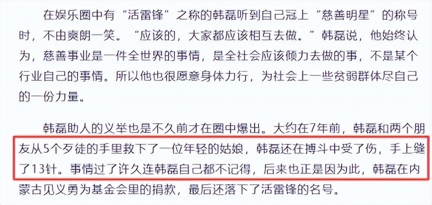 而这份未经雕饰的勇敢与良知,令人不由追忆起另一位曾以行动诠释正义的艺人——韩磊。