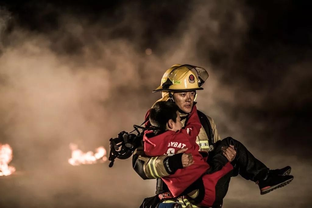 拍摄期间,他置身高温模拟火场,连续多日穿着厚重防护服进行高强度拍摄。